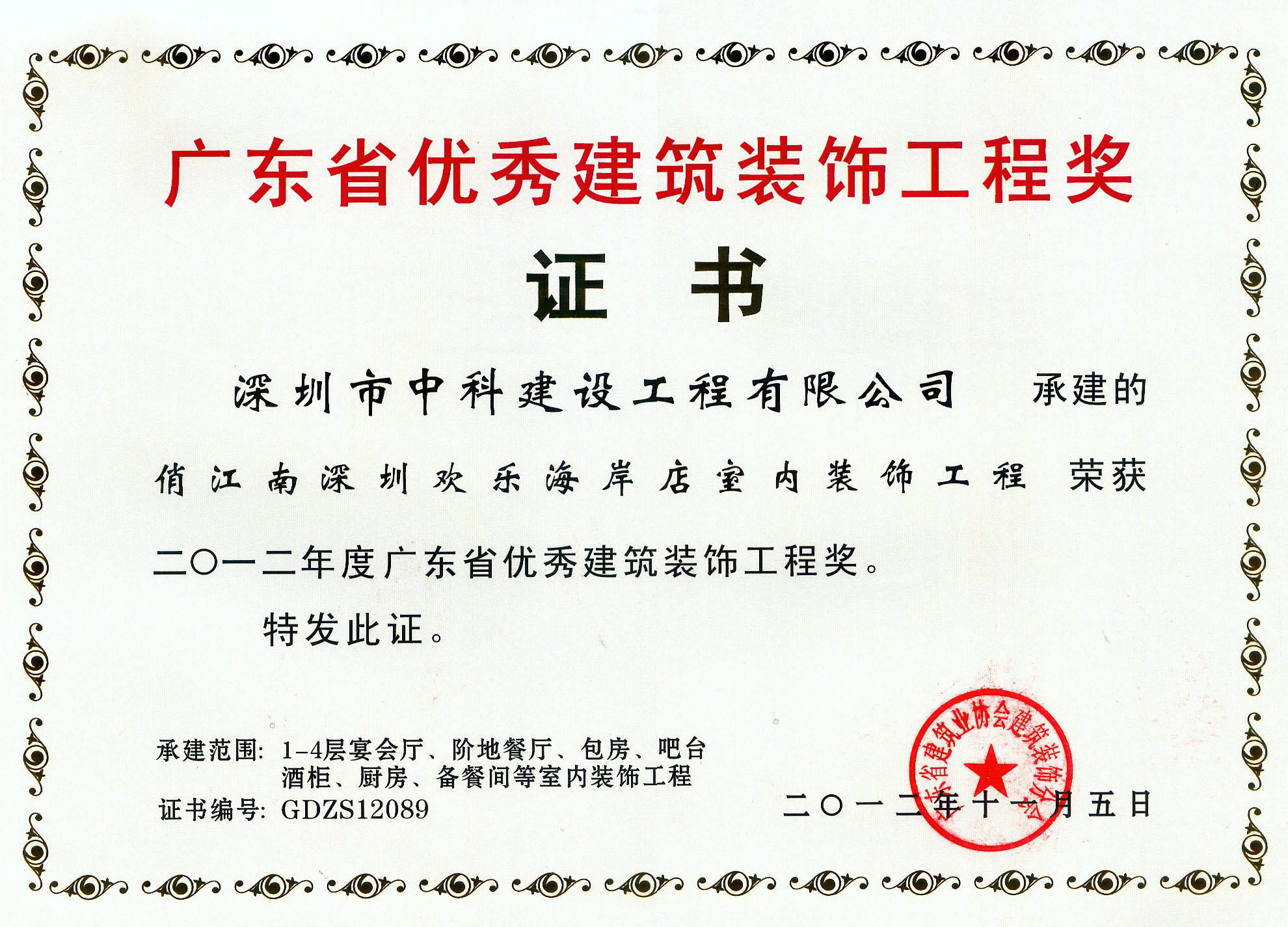 廣東省優(yōu)秀建筑裝飾工程獎(jiǎng)