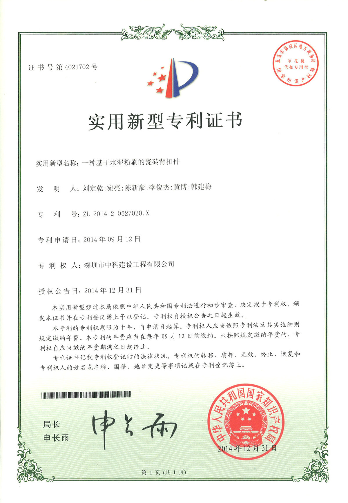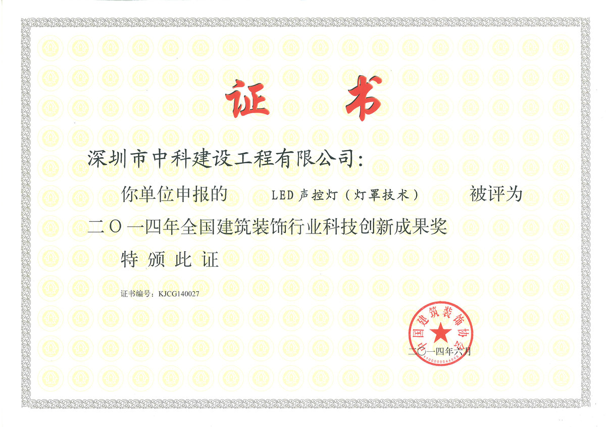 全國建筑裝飾行業(yè)科技創(chuàng)新新成果獎(jiǎng)