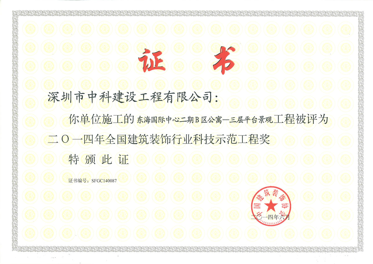 全國建筑裝飾行業(yè)科技示范工程獎(jiǎng)