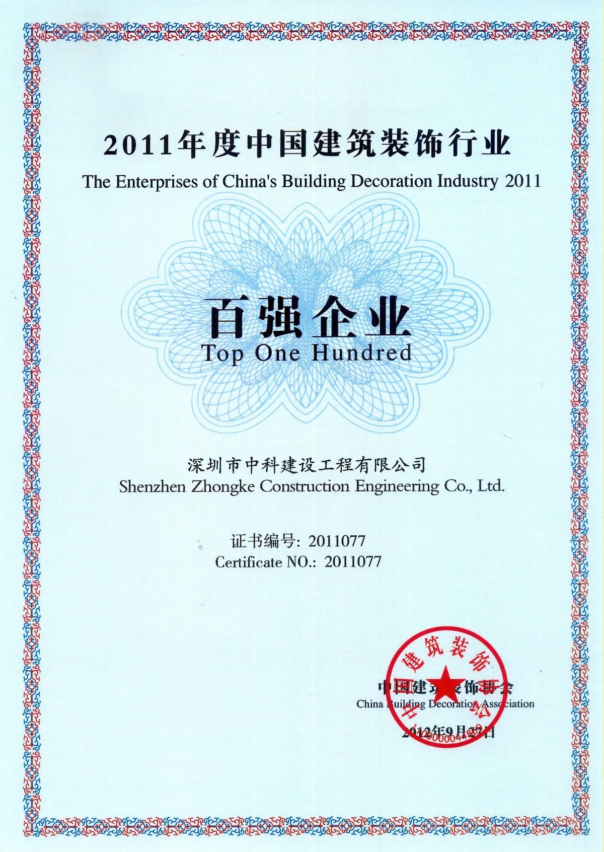 中國建筑裝飾理事單位證書