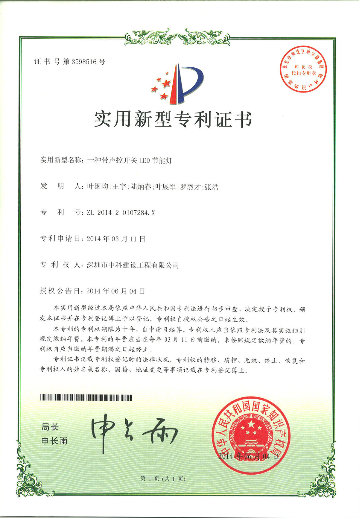 一種帶聲控開關(guān)的LED節(jié)能燈