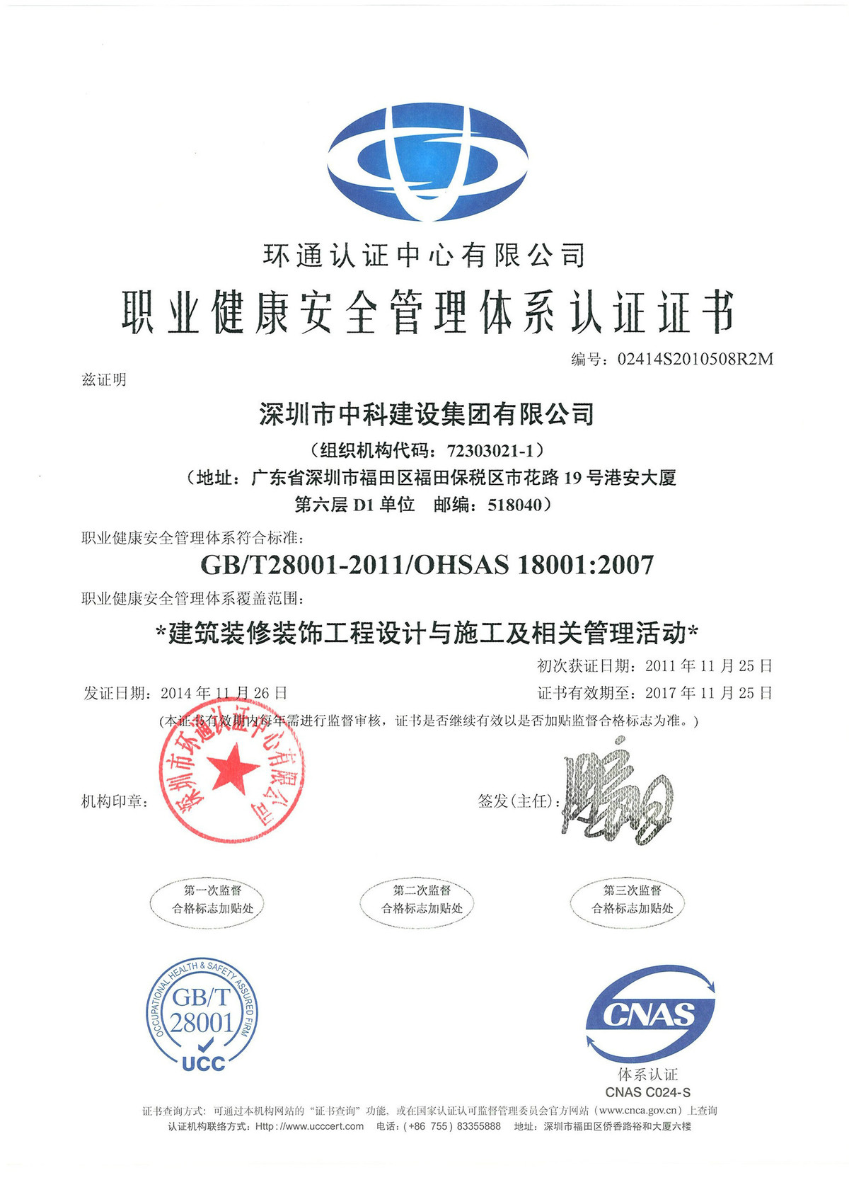 職業(yè)健康安全管理體系認(rèn)證證書